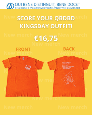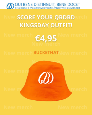 Bestel de nieuwe QBDBD Buckethat of Kingsday T-shirt nu voor 6 april! Straal op Koningsdag en andere feesten nu met deze nieuwe merchandise speciaal ontworpen door de Merchandise commissie!